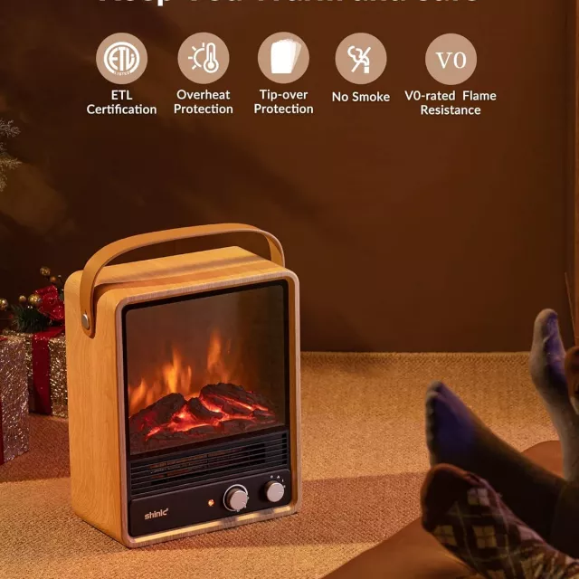 This heater combines modern efficiency with the comforting glow of a classic fireplace effect, making any room feel more inviting. Built with a durable flame-retardant ABS body and a highly efficient PTC heating element, it provides reliable heat without drying the air or causing energy waste. It heats spaces up to 249 sq ft, making it ideal for medium-sized areas where fast, even warmth is needed.
